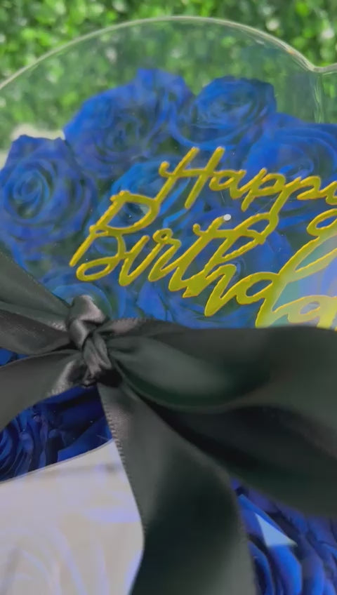 Premium Ecuadorian Preserved long lasting roses. In a black heart shape box with a acrylic cober